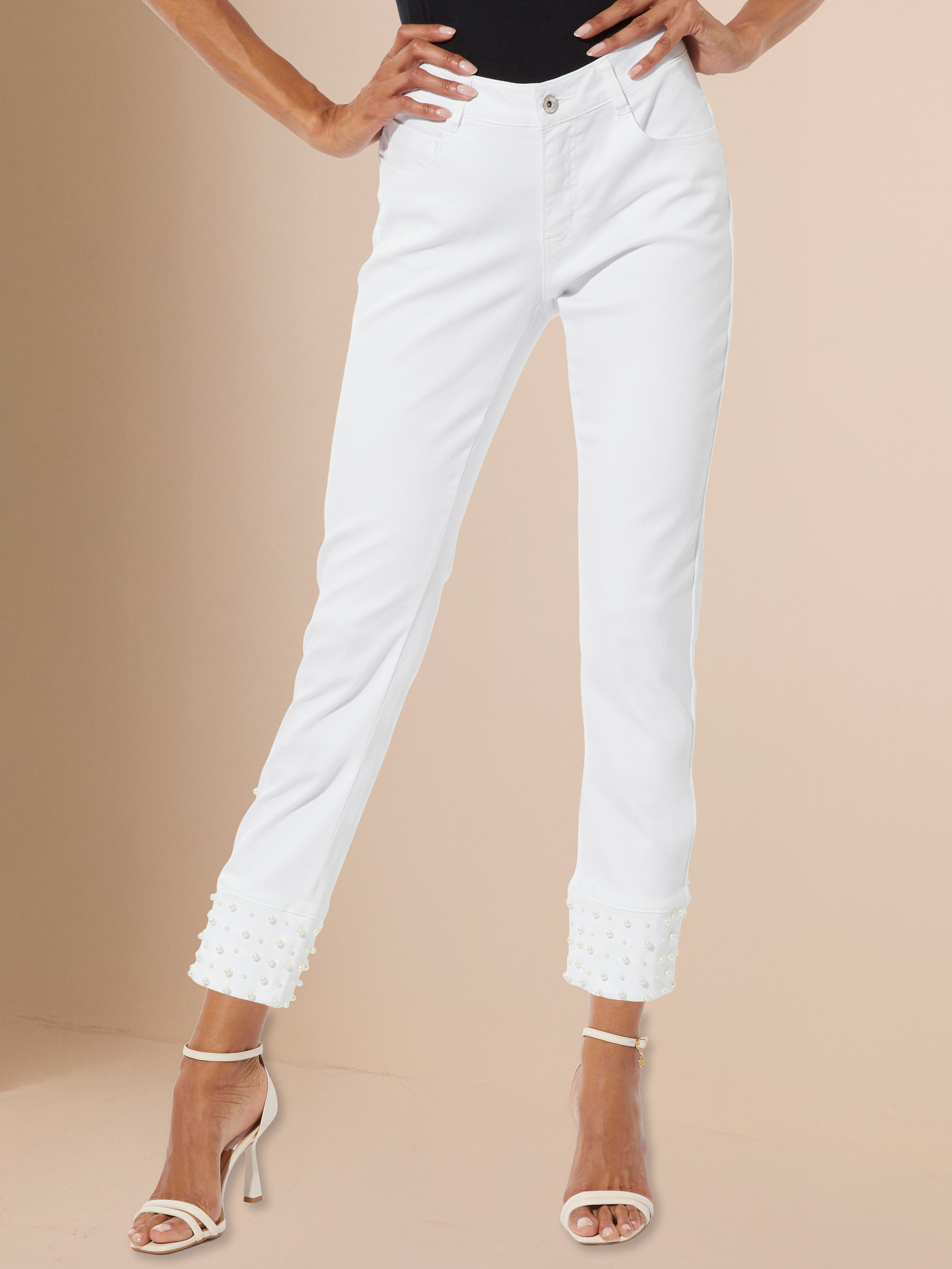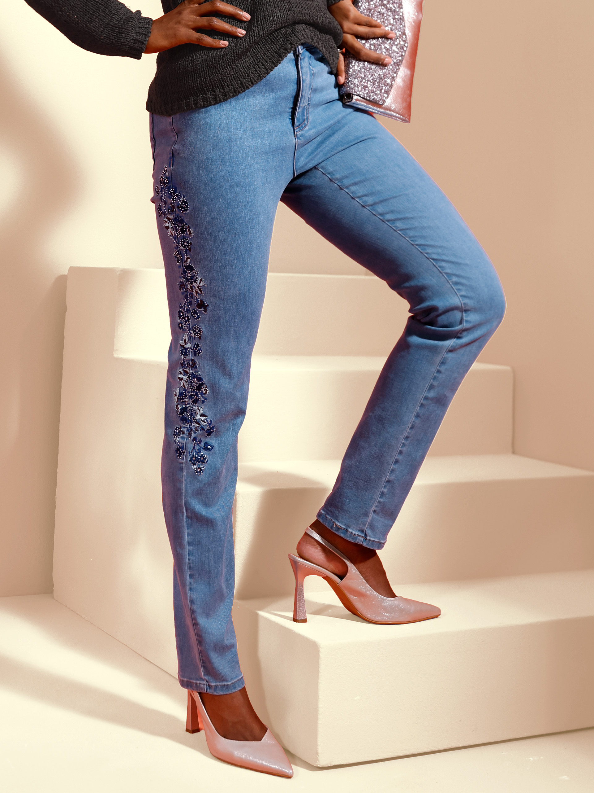 Ob lässig mit Sneakers und Sweatshirt oder elegant gestylt mit Bluse und Pumps – die schmale Jeanshose ist ein Alleskönner und verleiht jedem Outfit eine feminine und modische Note.