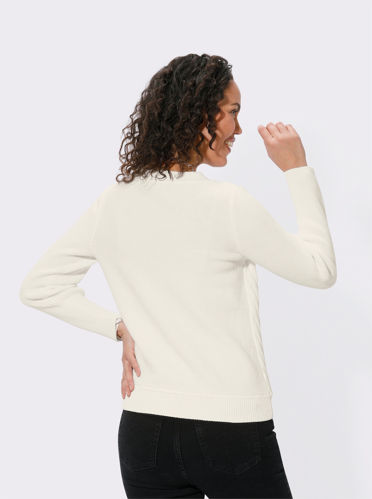 Rundhalspullover mit Rippenstrick - ecru